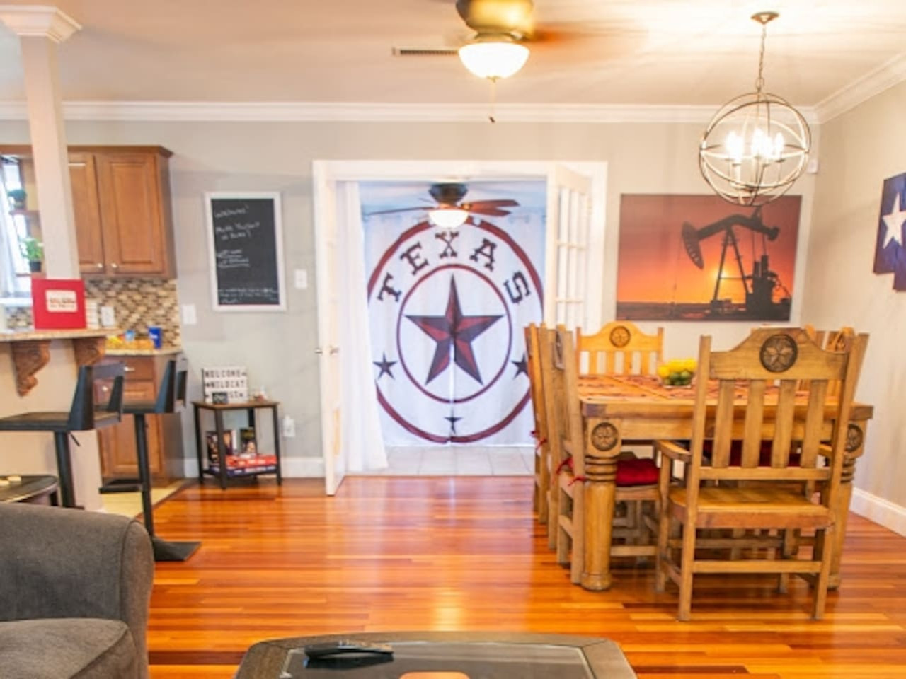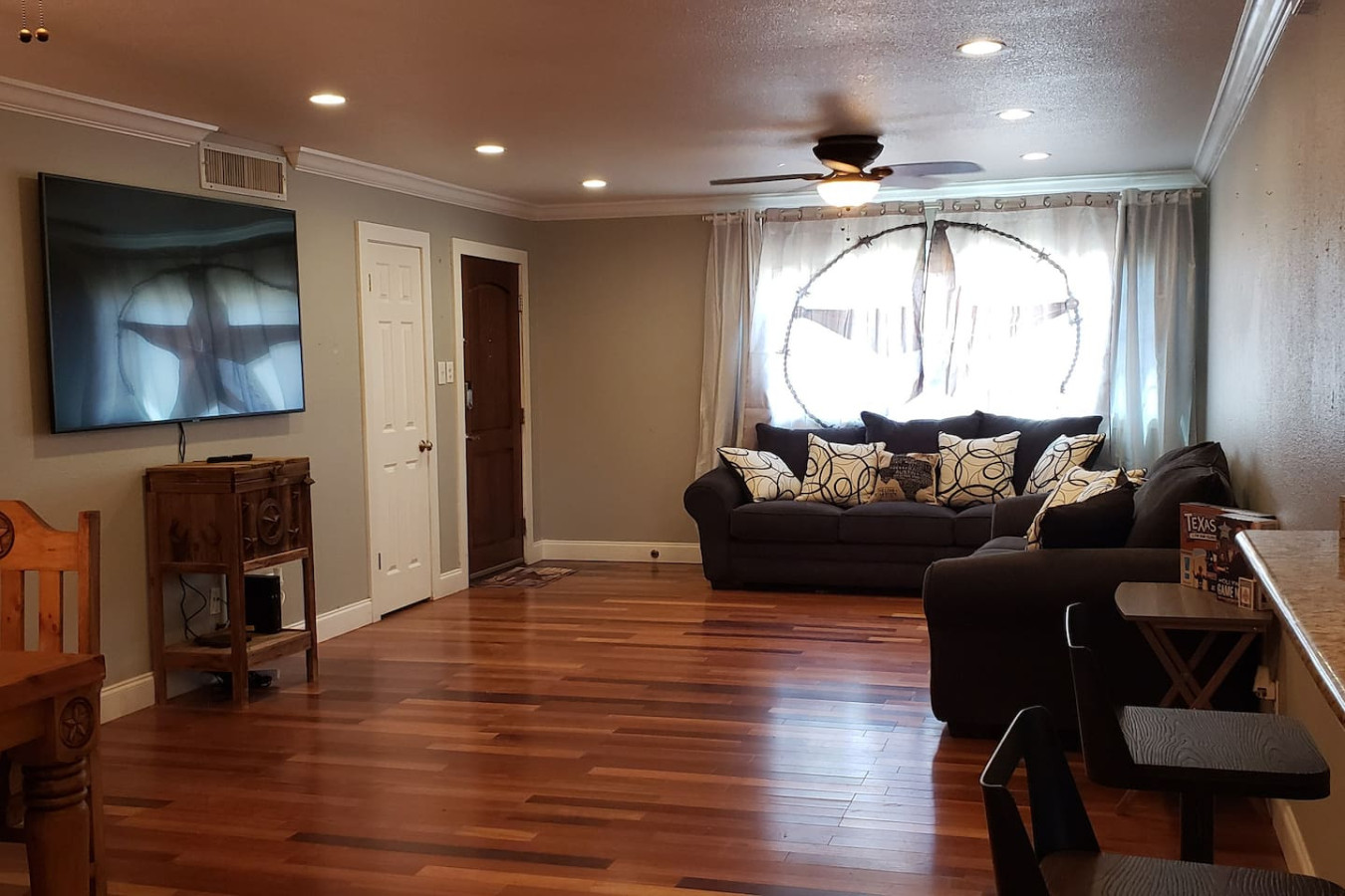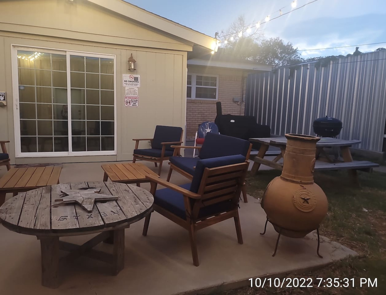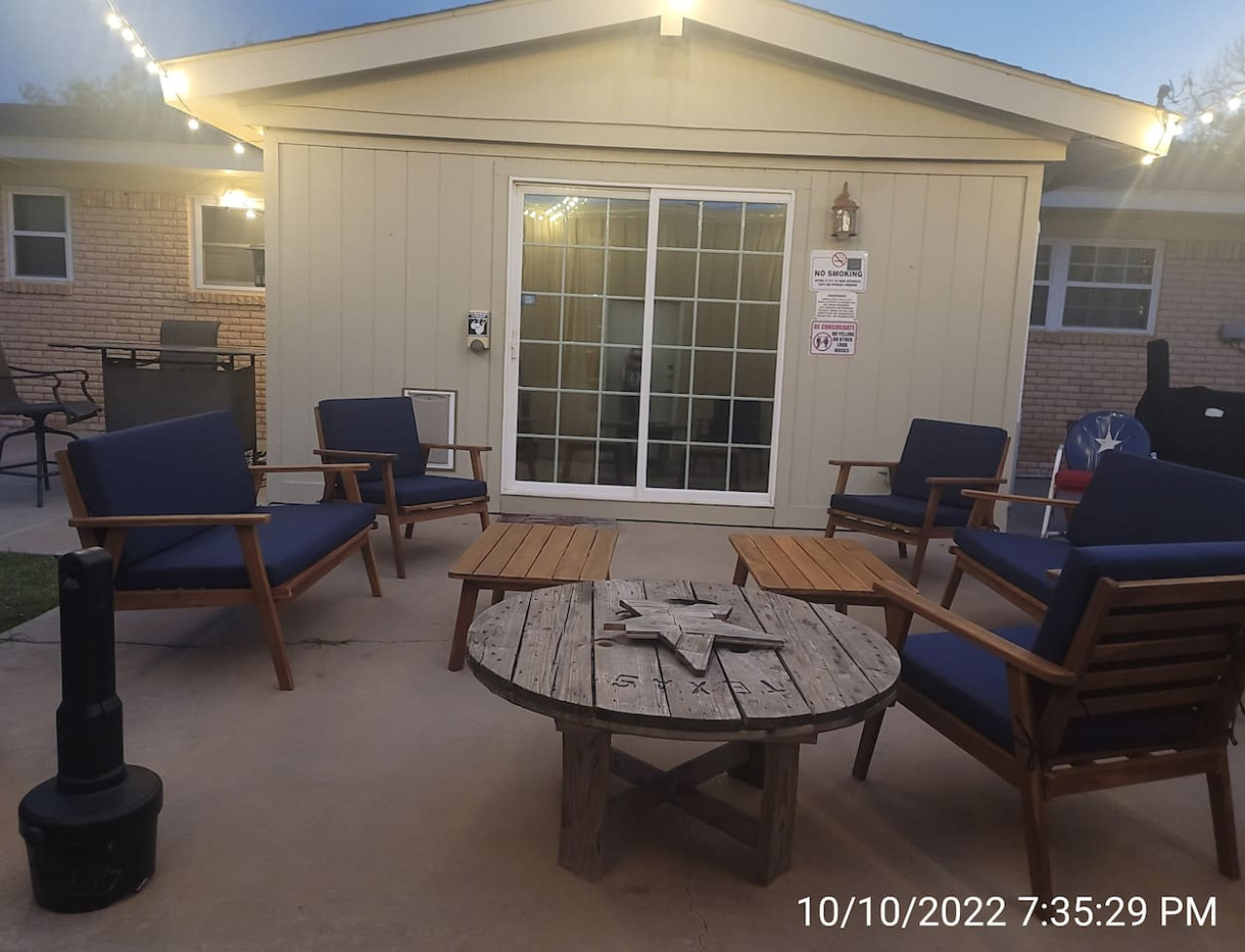 / nightLarge spacious living room and kitchen area with a texas appeal , great for large families or small , QUIET NEIGHBORHOOD, FAMILY FRIENDLY room for outdoor seating and activities No pets allowed House has been recently updated with brand new appliances throughout home, Stove, refrigerator, A/C unit & heater washer/dryer ,Tvs. furniture is brand new. since oct.2019. NO ANIMALS ALLOWED HOME IS CLEANED CLEANING SERVICE. TO HELP PREVENT THE SPREAD OF ANY VIRUS AFTER EACH CHECKOUT. Large spacious living room and kitchen area with a texas appeal , great for large families or small , QUIET NEIGHBORHOOD, FAMILY FRIENDLY room for outdoor seating and activities as well. No ANIMALS allowed NOTE: HOME IS CLEANED BY A PROFESSIONAL CLEANING SERVICE. TO HELP PREVENT THE SPREAD OF ANY VIRUS AFTER EACH CHECKOUT. EVERYONES HEALTH AND WELLBEING IS IMPORTANT RIGHT NOW INCLUDING MY OWN FAMILY AND YOURS. sanitizer is provided for guest use, as well as disfected wipes to use as needed. entire home, attached garage not for parking, laundry room only, but back garage/storage unit can be used for additional parking, can hold at least 1 vechile, has a roll up garage door, access is through the back yard, can also use for entertainment if needed. NO ANIMALS ALLOWED back storage unit has electricity, plug in outlets, overhead lights , good very entertaining available to answer any questions or concerns via Airbnb message, my cell phone via text or call, I will respond asap, always have my phone with me. NO ANIMALS ALLOWED QUIET FAMILY FRIENDLY NEIGHBORHOOD. house is centered in middle of town, in a quiet neighborhood, less than 2 miles from major restaurants, shopping mall & grocery store uber & Lyft is available FYI; FOR GUESTS OF 2 OR LESS I DO PROVIDE A LOWER NIGHTLY RATE ,PLEASE ASK We of course want you to be as comfortable as possible, so if there is anything that is needed for your stay, let me know. We ask with the respect of our neighbors who consent to us having an Airbnb, to please be respectful of their space( dont park in front of their homes) keep voices down, no yelling in front yard, keep interaction/ activities in backyard as much as possible. NO ANIMALS ALLOWED