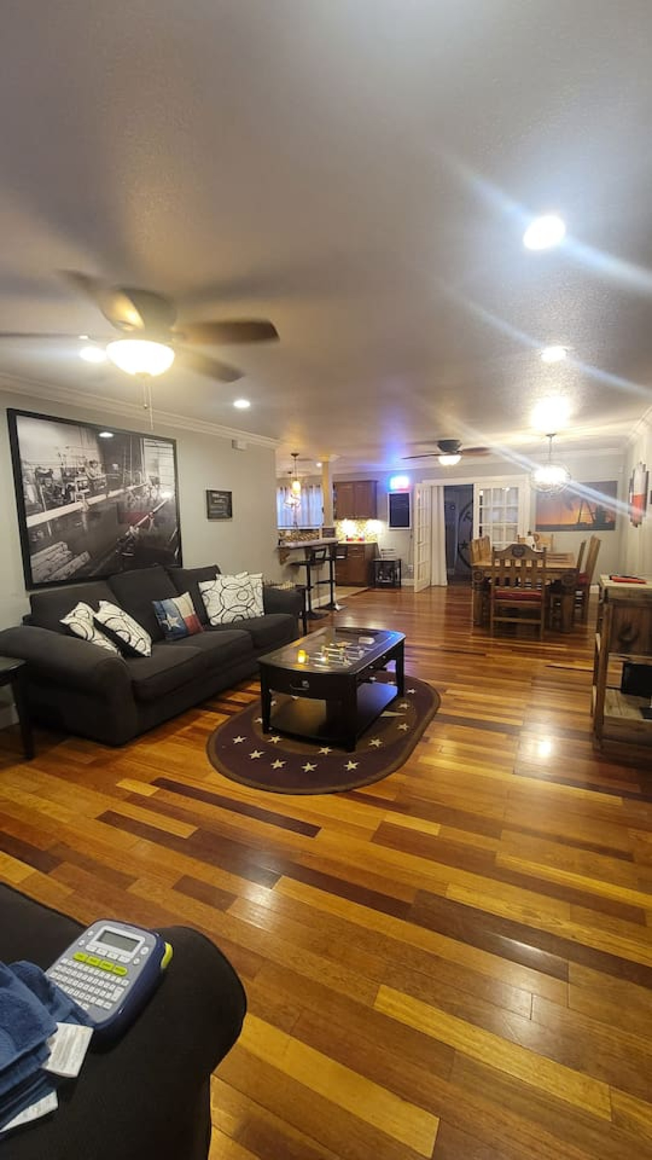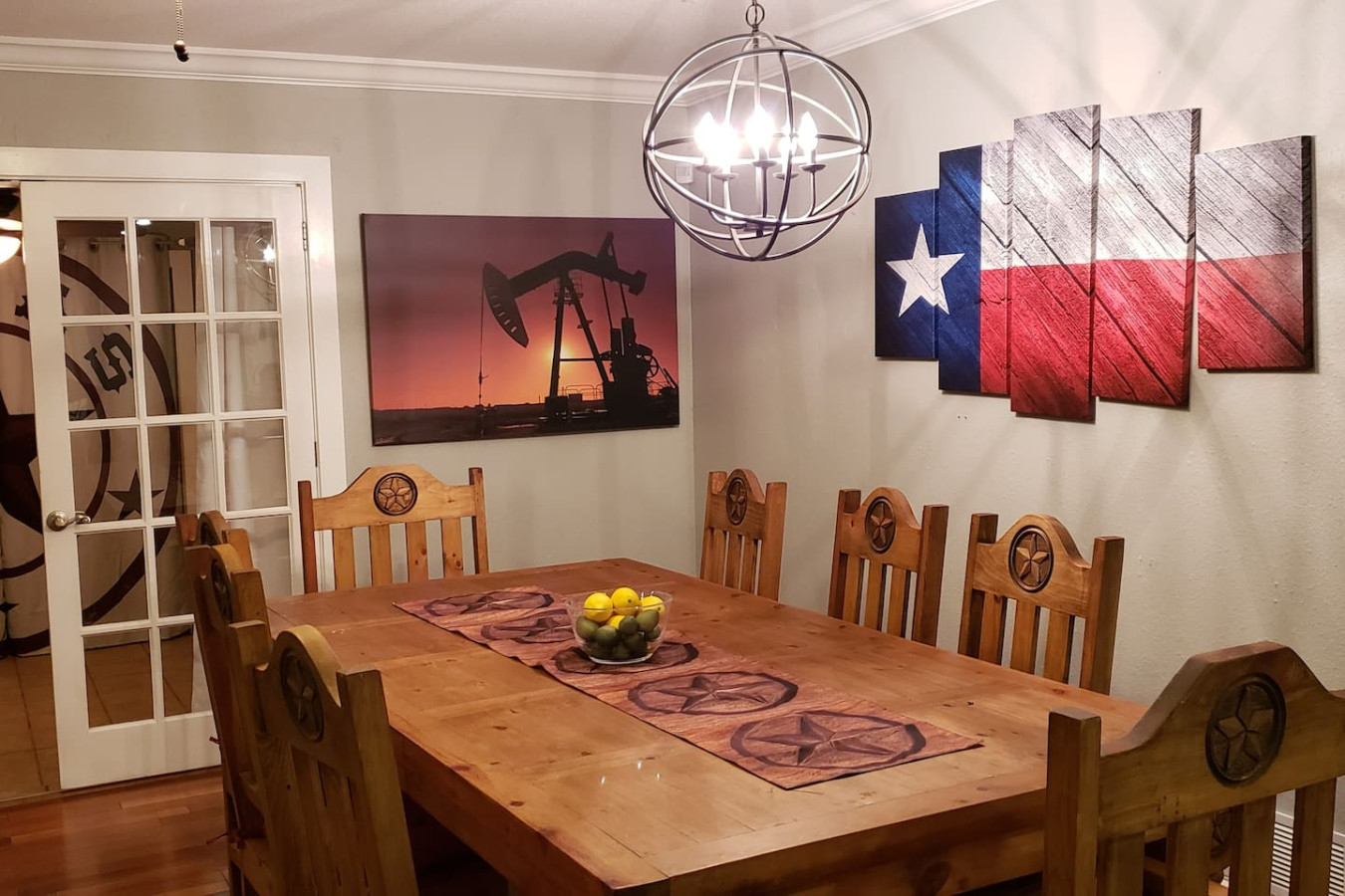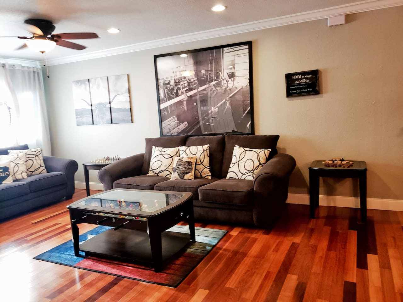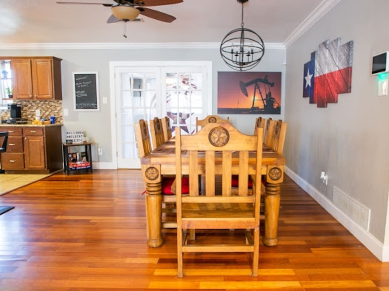 / nightLarge spacious living room and kitchen area with a texas appeal , great for large families or small , QUIET NEIGHBORHOOD, FAMILY FRIENDLY room for outdoor seating and activities No pets allowed House has been recently updated with brand new appliances throughout home, Stove, refrigerator, A/C unit & heater washer/dryer ,Tvs. furniture is brand new. since oct.2019. NO ANIMALS ALLOWED HOME IS CLEANED CLEANING SERVICE. TO HELP PREVENT THE SPREAD OF ANY VIRUS AFTER EACH CHECKOUT. Large spacious living room and kitchen area with a texas appeal , great for large families or small , QUIET NEIGHBORHOOD, FAMILY FRIENDLY room for outdoor seating and activities as well. No ANIMALS allowed NOTE: HOME IS CLEANED BY A PROFESSIONAL CLEANING SERVICE. TO HELP PREVENT THE SPREAD OF ANY VIRUS AFTER EACH CHECKOUT. EVERYONES HEALTH AND WELLBEING IS IMPORTANT RIGHT NOW INCLUDING MY OWN FAMILY AND YOURS. sanitizer is provided for guest use, as well as disfected wipes to use as needed. entire home, attached garage not for parking, laundry room only, but back garage/storage unit can be used for additional parking, can hold at least 1 vechile, has a roll up garage door, access is through the back yard, can also use for entertainment if needed. NO ANIMALS ALLOWED back storage unit has electricity, plug in outlets, overhead lights , good very entertaining available to answer any questions or concerns via Airbnb message, my cell phone via text or call, I will respond asap, always have my phone with me. NO ANIMALS ALLOWED QUIET FAMILY FRIENDLY NEIGHBORHOOD. house is centered in middle of town, in a quiet neighborhood, less than 2 miles from major restaurants, shopping mall & grocery store uber & Lyft is available FYI; FOR GUESTS OF 2 OR LESS I DO PROVIDE A LOWER NIGHTLY RATE ,PLEASE ASK We of course want you to be as comfortable as possible, so if there is anything that is needed for your stay, let me know. We ask with the respect of our neighbors who consent to us having an Airbnb, to please be respectful of their space( dont park in front of their homes) keep voices down, no yelling in front yard, keep interaction/ activities in backyard as much as possible. NO ANIMALS ALLOWED